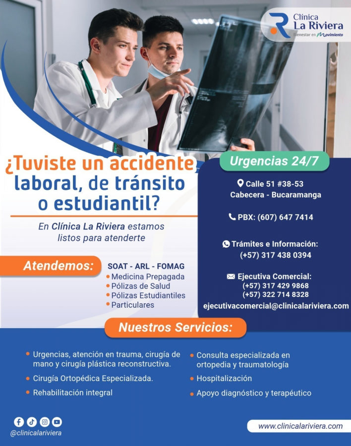 ATENCION ACCIDENTES - URGENCIAS 24/7 - CLINICA LA RIVIERA